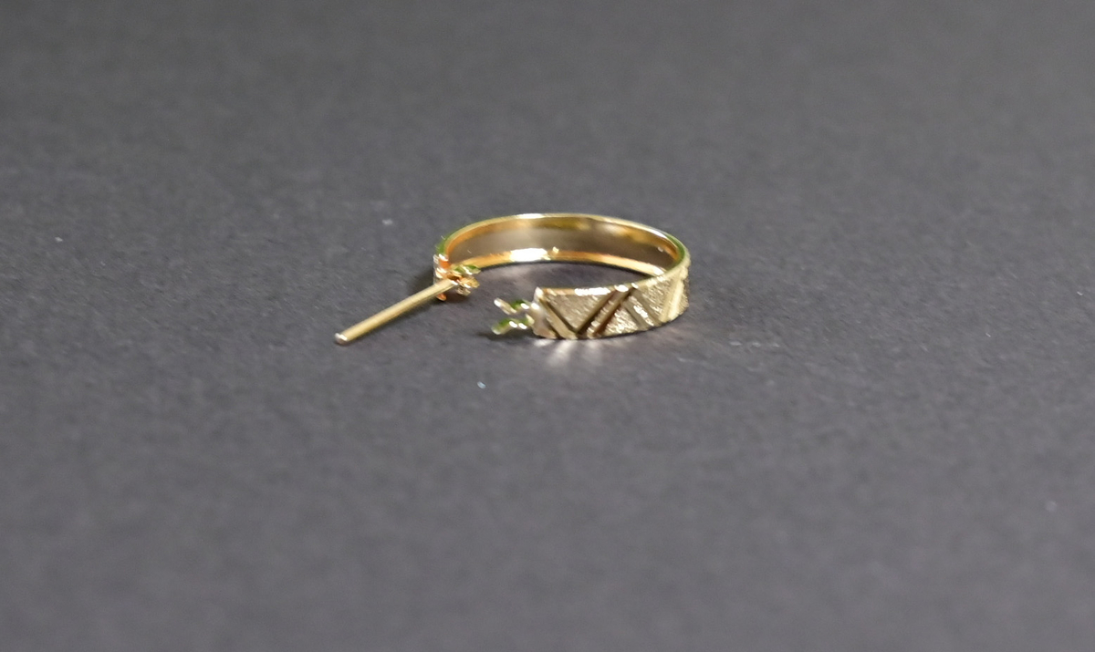 つや消しのベースにジグザグの彫りを施した、個性的で洗練されたデザインのピアス。
